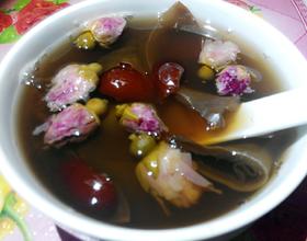 材料黑木耳、玫瑰花、红枣清洗干净、红糖备用