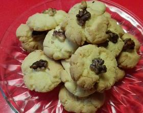 用大拇指在中心按扁,中间放一颗核桃仁即可。