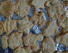烤盘铺锡纸,将饼干铺在上面,中间留少许间隔