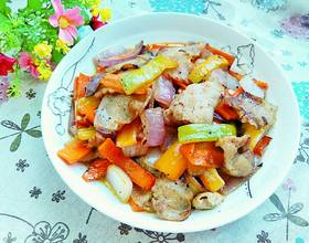 5、传统回锅肉中加入豆瓣酱,青蒜炒制而成,口味独特。没有豆瓣酱可以用豆豉代替。除此之外,怕辣的可以换成甜面酱,也可以用常见的老干妈炒制,味道也很不错。