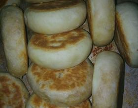 炒熟后加花生油再加温水,和成油酥,还要留一点不加油的加红糖做成馅料,然后将发酵好的面团铺平油酥摸匀卷好,揪剂,包糖上锅,电饼铛上下一百八十度