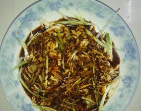 然后将调好的味汁淋在鸡丝和葱白上即可。