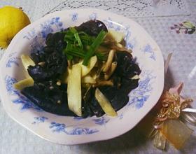 加黑木耳,再加入少许水,加盖烧一分种。