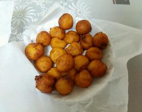 将圆子搓好后,蘸打好的鸡蛋液,下锅油炸即可,油炸不适合太高,否则表面容易老,