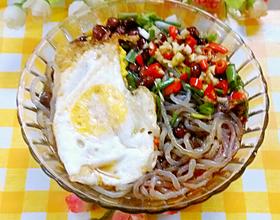 所有配料方面大家可以适量增减,如果喜欢更酸点的可以多加点陈醋呀,红薯粉因之前有煮泡过,所以在煮粉时就不要煮太久了,免得太软太烂不好吃哦,刚好熟就好,这样粉丝才有劲道,辣椒酱是我自己做的,里面有芝麻,香香的,煮粉煮面的搭挡配料呀,详细做法我菜谱有,仅供参考呀,有香菜的话也放一点进去,我家刚好没有我就不放了