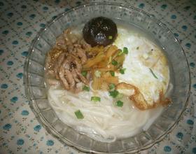先添面加汤,再依次码入鸡蛋,榨菜,肉丝,香菇,最后撒上葱花即食