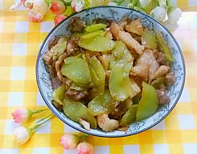 把肥肉炒出油后堆至锅的一边,把莴笋放进锅里炒