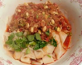 - 14. 水开煮面2分钟捞入碗中,浇上臊子