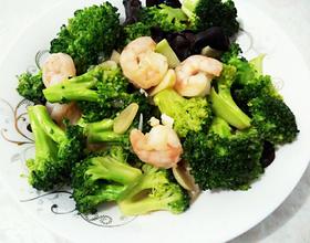 锅中热油,下蒜片炒香,放西兰花,放盐,耗油调味