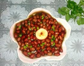 最后把汤汁浇在花生米上拌匀腌制一会儿就做好了。