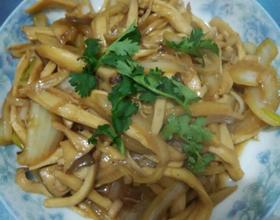 加入味极鲜 盐翻炒至蘑菇变软就可以出锅