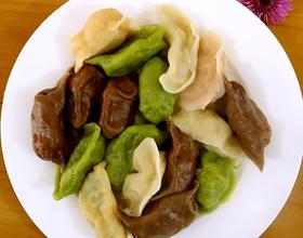 - 4. 蔬菜榨成汁,可可粉用水调匀,备用,这时候准备做饺子馅