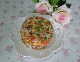 萝卜干是自己做的不是很咸,所以不用泡,洗干净就可以了。倒入米饭时放少许盐就好,因为萝卜干和香肠都有咸味的。米饭最好用微波炉加热下,炒饭时就很容易打散。
