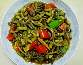 - 5. 先把酸豆角放进锅里炒一下,盛出备用《炒一下这样豆角会很脆》