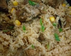 玉米粒和豌豆另用用开水焯煮七分熟,拌入电饭锅就可以按下煮饭功能了