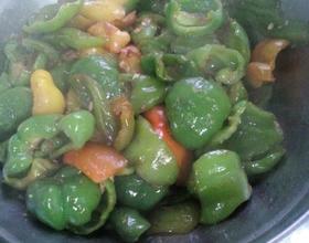 锅内出水的时候调味最恰当,调好味道后青椒保熟,紧接着出锅,青椒色泽也很光亮,甜,脆,鲜味俱佳