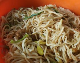 - 13. 把事前蒸好的面条!倒入菜中搅拌