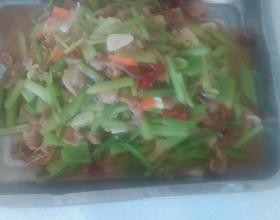 1先将肉炒熟!!2再加入芹菜!!加入调料!!