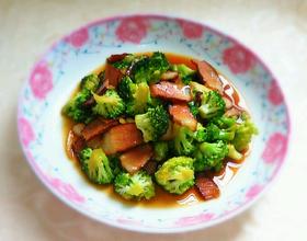 - 2. 西兰花洗净沥水备用。葱,姜,蒜头,腊肉都洗净。
