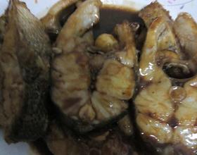 放已煎的鲈鱼,后放酱油和一点水,让它熟透