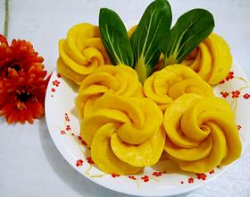 勺子碾碎成泥,放入面粉,放发酵粉活成面团