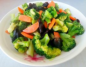 倒入西兰花,胡萝卜,继续爆炒