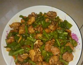 锅中热油,下入姜蒜,干辣椒,花椒,辣椒酱,炒香,再下入兔腿尖椒豆角,大火爆炒,十分钟后加盐生抽起锅装盘即可