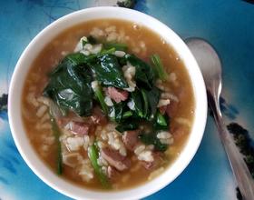 这款粥真的很有营养,菠菜要提前焯一下,去除菠菜里面的草酸,这样吃起来更有营养,更容易吸收。菠菜不要烫大劲儿了,要么就没有营养了。