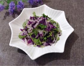 萝卜丝放少许盐腌制十五分钟,紫甘蓝也一样处理。