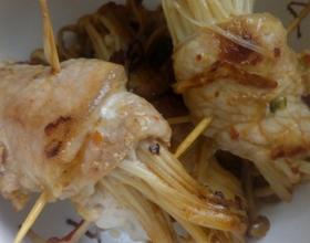 将瘦肉包裹金针菇,用牙签插上,
