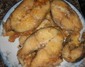 热油,将盐洗去。煎前鱼过一下鸡蛋