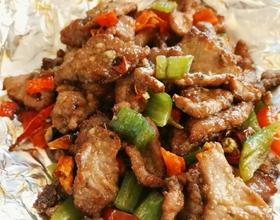 烤盘放上锡纸,磨菇垫在牛肉下面,牛肉上面再放张锡纸包好放入预热好的烤箱,上下火220度,15分钟即可