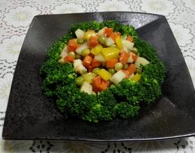 将冲好的西兰花放入碗中加少许盐和香油拌匀