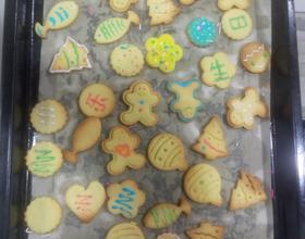 最后放到预热175度的烤箱烤15分钟最好在12分钟后看着烤箱