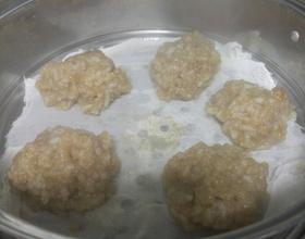 肉、萝卜、番薯粉混合,加入料酒,酱油,盐,鸡精等调味,用手捏,直至完全混合。