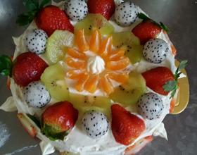 奶油抹平,摆放好水果最后奶油装饰一下就OK啦,