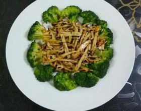 西兰花弄成小朵,焯水备用。