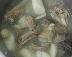 鸭汤煲快一小时加山药一起炖,15分钟关火加盐