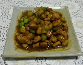 锅内留少许底油,放入葱花和角瓜丁,翻炒至角瓜丁变色