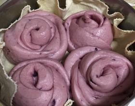 - 5. 取出发酵好的面团,排空气体,反复揉面,直至敦实。将面团平均分成若干个小面团,约一头大蒜那么大,像包饺子擀皮一样,擀成厚度适中的圆饼,一个压上个一半,一共四个,从最后一个往上卷,中间可加任意内馅,如蜂蜜白糖花生酱等等。卷成后,中间切断即可成两朵玫瑰,断面捏到一起,沾点儿面粉装锅,继续醒发40分钟。