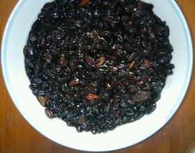 锅里放黑豆,和黑豆泡过的水,放在火上慢慢熬,开啦放白糖,和盐