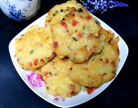 锅里起油,用个模具一个一个的下去煎,(没有模具可以分成两次的下去煎)