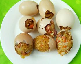1.大家做的时候蛋壳里可以适量留点蛋液做出来更好吃!2.糯米要用清水泡膨胀才更入味,容易熟!3.拌糯米时,食材可以根据自己的喜好添加,比如虾仁、猪肉等!