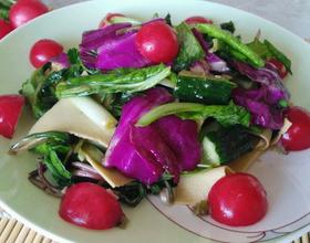 里面的蔬菜可以随意换成自己喜欢的菜,随喜哈!如果人多就加量吧!保证好吃,大鱼大肉会剩下,这道清爽大拌菜绝不会剩下的。