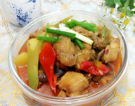 锅里的油再把洋葱和辣椒芹菜炒下,掉下一碗清水,