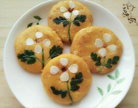 - 6. 平底锅中放少许油,油温七成热时将南瓜饼放入锅中,中小火煎至南瓜饼两面金黄色就可以了