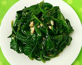 菠菜很容易炒熟,关火放蒜沫,用筷子搅一下就可以出锅了!