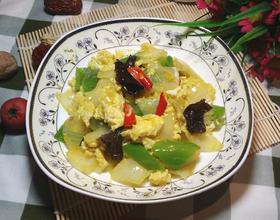 鸡蛋不可炒老,不仅影响卖相,也影响口感,快速翻炒。