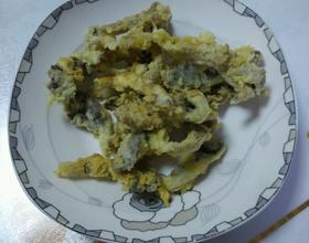 鸡蛋放碗里打散。加入少需淀粉,最好是土豆粉,用筷子打均匀。备用