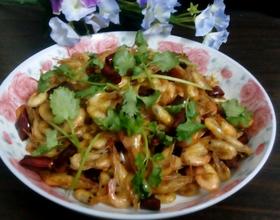 锅里加适量油,烧热,放虾炸,时不时翻翻